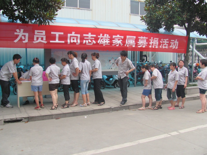 公司染整事業部員工向志雄于7月7日晨因突發疾病在居住地病故的不幸消息傳到公司,公司領導非常悲痛,馬上派部門領導赴醫院做好安撫家屬、喪事處理和善后工作。向志雄年僅32歲,家中有尚有妻子和幼兒,家庭生活陷入困境。對此,公司向其家屬給予了一定的慰問金,與此同時,公司黨支部、工會、團支部及時組織開展了為向志雄家屬募捐活動,號召黨團員和全體員工伸出援助之手,獻出一份愛心,積極為向志雄家屬捐款。活動迅速得到了全體黨員和廣大員工的積極響應,紛紛解囊相助,短短一天多時間,共收到507名員工的29976元的捐款,其中染整事業部蔡小剛捐款3000元,捐款不論多少都體現了員工們的愛心。7月19日,公司將員工們的捐款送到了向志雄家屬手中,向志雄家屬對公司和員工們的誠摯關愛表示衷心感謝。